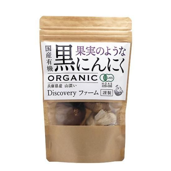 兵庫県のメーカーが山深い自社農場で栽培した有機にんにくを、黒にんにくに仕上げました。二段熟成機による特殊加工技術により、えぐみを抑えています。